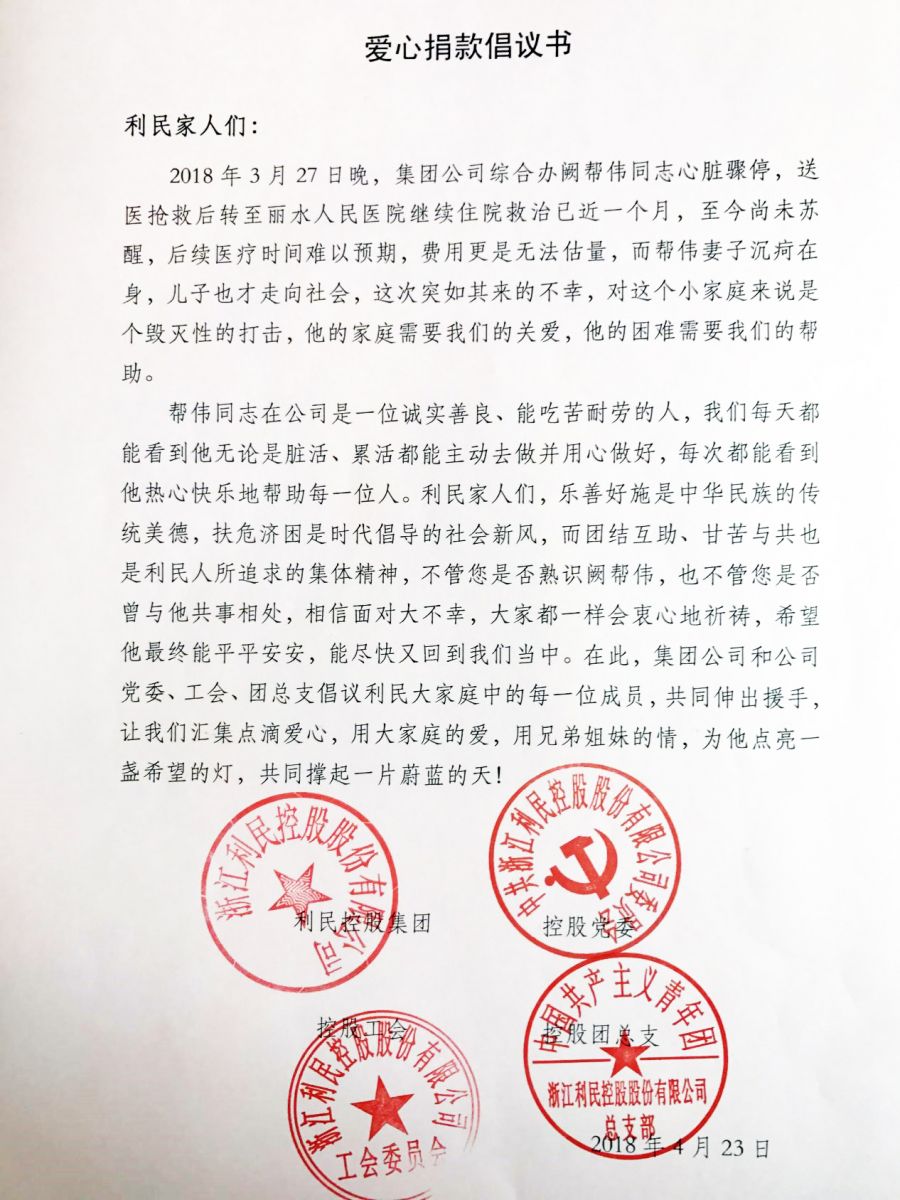 而當(dāng)公司一名員工突發(fā)意外而致使其家庭陷入困境的時(shí)候,正是利民大家庭中的每一位成員,在公司黨政工團(tuán)的共同倡議下,在雙節(jié)期間用大家庭的愛,用兄弟姐妹的情,共同匯集愛心,都伸出援手希望能為他點(diǎn)亮一盞希望的燈,幫他撐起一片晴朗的天!這是利民人團(tuán)結(jié)奉獻(xiàn)、關(guān)愛他人、患難扶持的“利民家人”企業(yè)文化建設(shè)的一次成果,也是利民控股在圍繞社風(fēng)慈善、扶貧濟(jì)困方面履行的一個(gè)優(yōu)秀企業(yè)的社會(huì)責(zé)任的一次展現(xiàn)。今后,利民控股還將從公司實(shí)際出發(fā),與社會(huì)主義核心價(jià)值觀踐行、青年員工思想道德引領(lǐng)等工作有機(jī)結(jié)合,進(jìn)一步提升“慈孝文化”的參與度、精準(zhǔn)度,為“慈孝遂昌”建設(shè)貢獻(xiàn)一股“利民力量”!