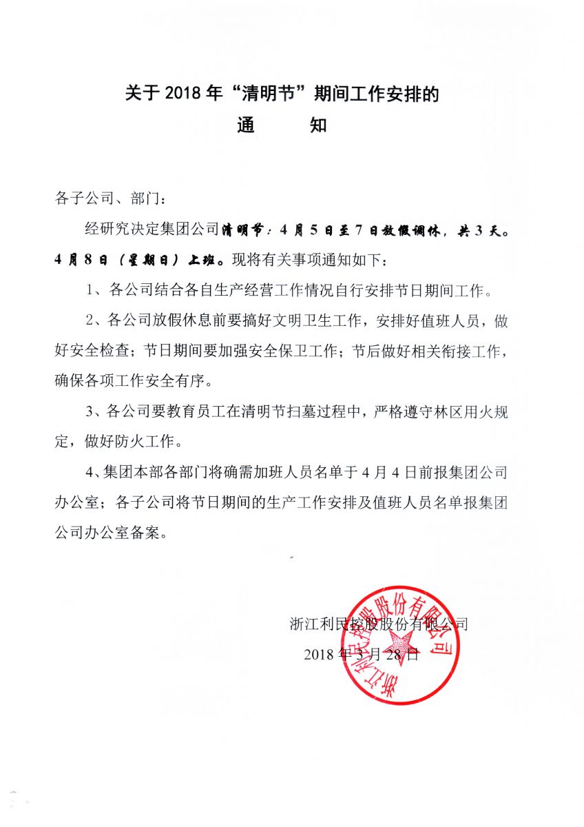 關(guān)于2018年清明節(jié)期間工作安排的通知