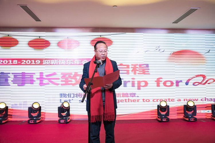 一曲高歌畢,迎得李董上臺來!李峰董事長邁著矯健沉穩(wěn)的步伐走上臺,用他中氣十足的聲音為此次迎新快樂年會致辭。2018年,利民創(chuàng)下了3.69億的營收,5000萬元的利稅,利民化工、利化爆破突破億元大關(guān),這一樁樁一件件,都是值得利民家人驕傲自豪的!當(dāng)然,這些都已經(jīng)載入了利民史冊,我們利民家人們要以更加飽滿的精神投入到2019年的工作中去,就像習(xí)主席新年賀詞里講的,幸福生活都是奮斗出來的,我們在路上?,F(xiàn)場氣氛第一次達(dá)到高潮,全體利民家人被李峰董事長的致辭所鼓舞!