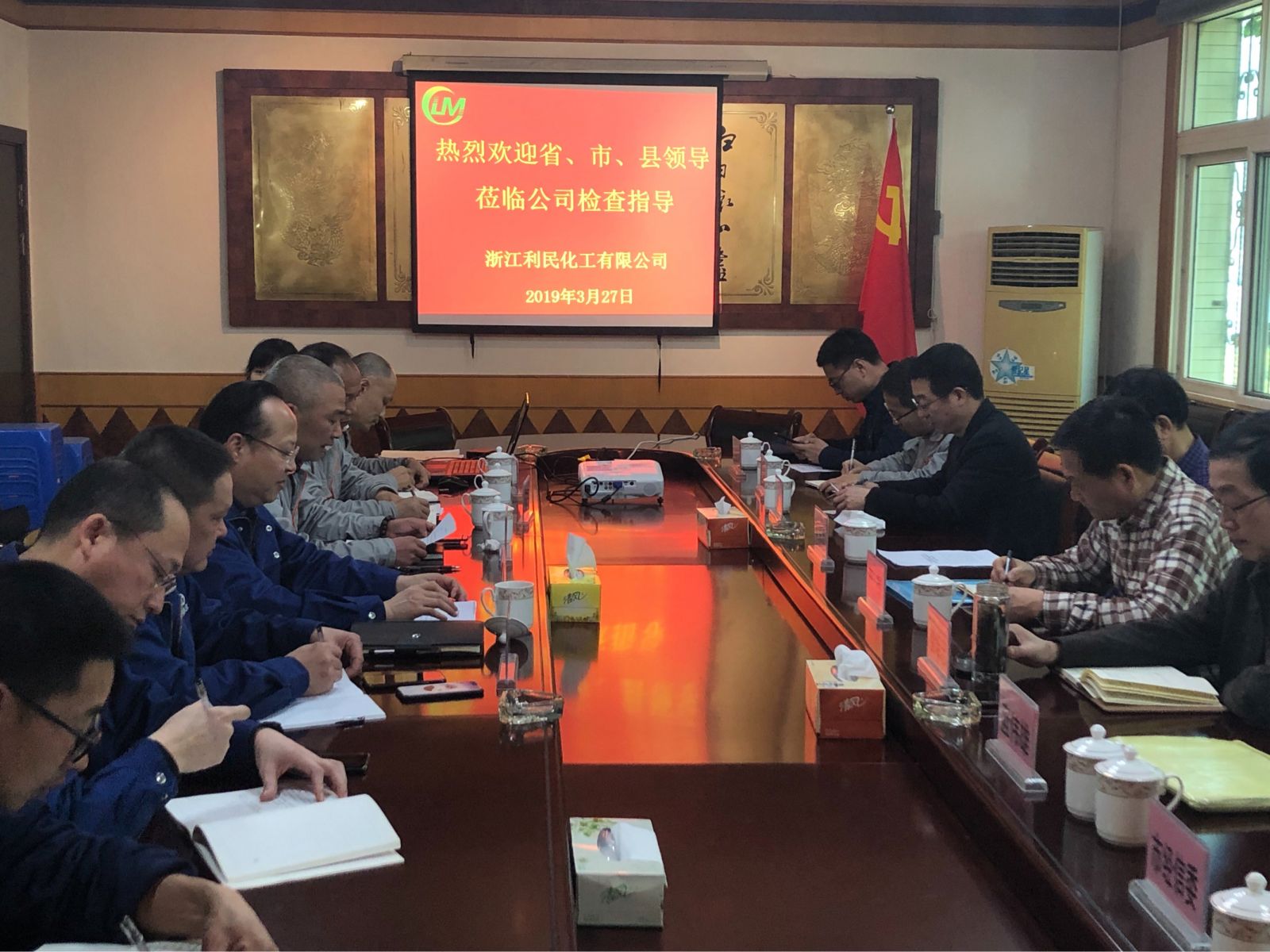 2019年3月27日,浙江省委軍民融合發(fā)展委員會辦公室副主任嚴杰帶領(lǐng)安全監(jiān)管處黃憲法處長及市縣民爆行業(yè)監(jiān)管部門到公司檢查安全生產(chǎn)工作,公司董事長李峰、總經(jīng)理吳均等陪同檢查。