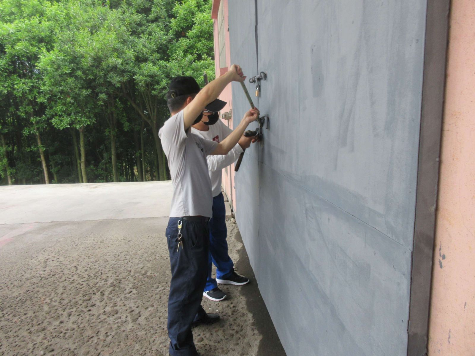 應(yīng)急處置完成后倉(cāng)庫(kù)保管員查看被破壞情況
